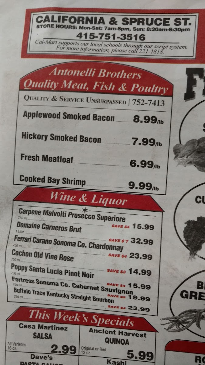 Cal-Mart Menu
